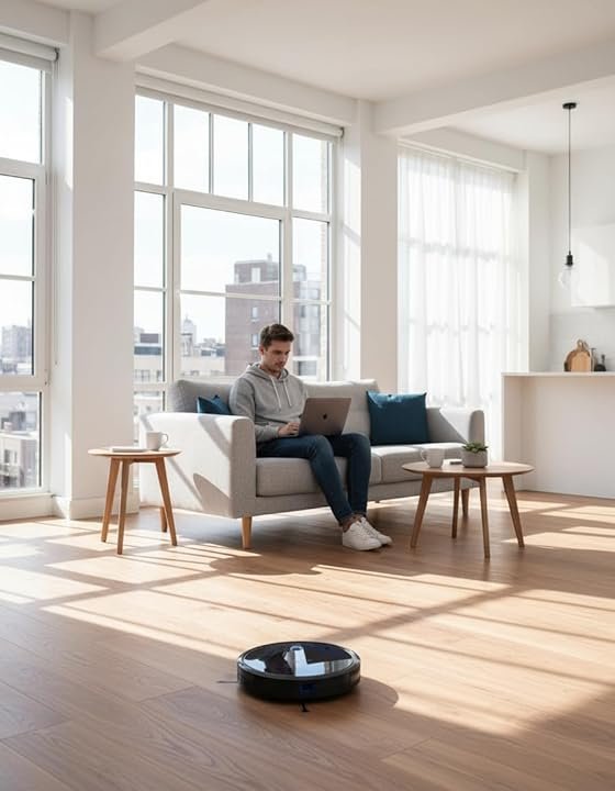 • Ultra-Thin & Powerful Robot Vacuum: Boasting a slim 2.85-inch profile, this robot vacuum cleaner navigates under furniture with ease, ensuring no spot is missed for a fully thorough clean.